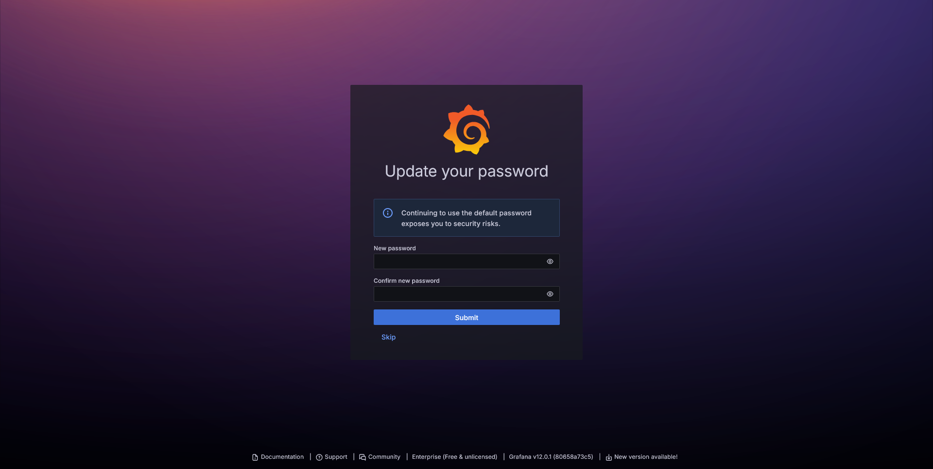 Usaremos admin/admin. A continuacion nos pedirá cambiar la password de admin: